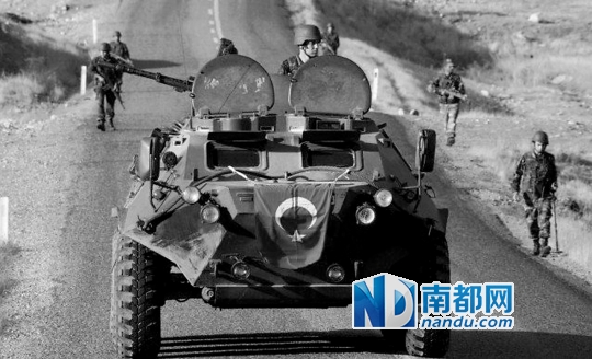 土耳其军队在南部边境巡逻。