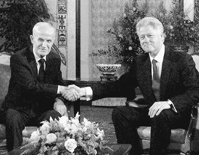 1994年10月,时任美国总统克林顿和叙利亚前总统哈菲兹·阿萨德进行会晤,双方就中东和平进程进行了讨论。资料图片