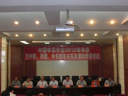 图为中国中东学会2013年年会暨“中国、美国、中东国家关系发展趋势”研讨会开幕式主席台。