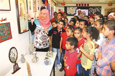 埃及开罗中国文化中心内,当地一家小学的老师正在给小朋友们介绍中国传统文化。(本报记者 王云松摄)