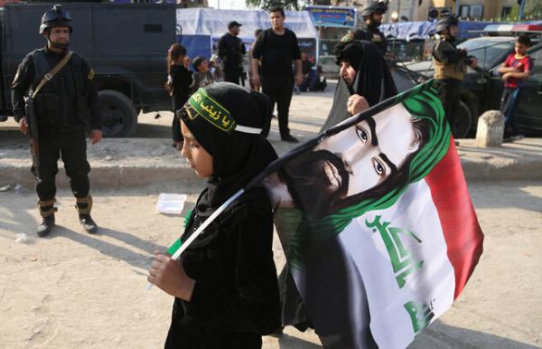 本月于巴格达,一名朝圣者带着伊玛目侯赛因的旗帜,侯赛因被尊为什叶派的殉道者