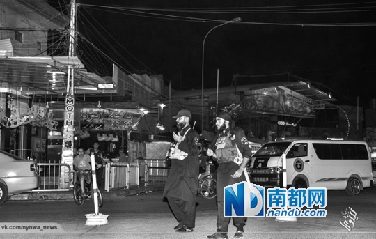 “伊斯兰国”组织的警察在其所占领的摩苏尔市街头巡逻。那些效力于伊拉克政府的“潜伏者”目前都以平民身份隐身摩苏尔。