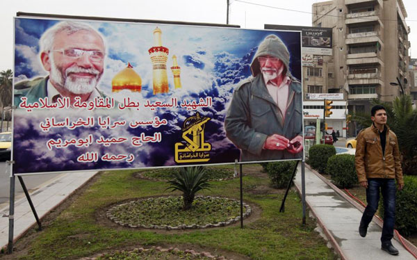 也正是这一组织负责张贴了巴格达市中心印有伊朗将领Hamid Taghavi,肖像的广告牌。Taghavi将军是伊朗革命卫队的一名成员,他以Abu Mariam的化名为民兵组织成员所熟知。12月,他在伊拉克北部的战场上被杀害,却也因此成为了许多伊拉克什叶派战士心目中的英雄。