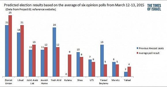内塔尼亚胡在选战中大打“负责任的成年人”形象,而大选前的民调显示,他与主要对手赫尔佐格(Isaac Herzog)的民意支持旗鼓相当,而后者领导的左翼犹太复国主义联盟(Zionist Union)已经在一些民调中超过了内塔尼亚胡的利库德党,在120席的议会中以四席的优势领先。